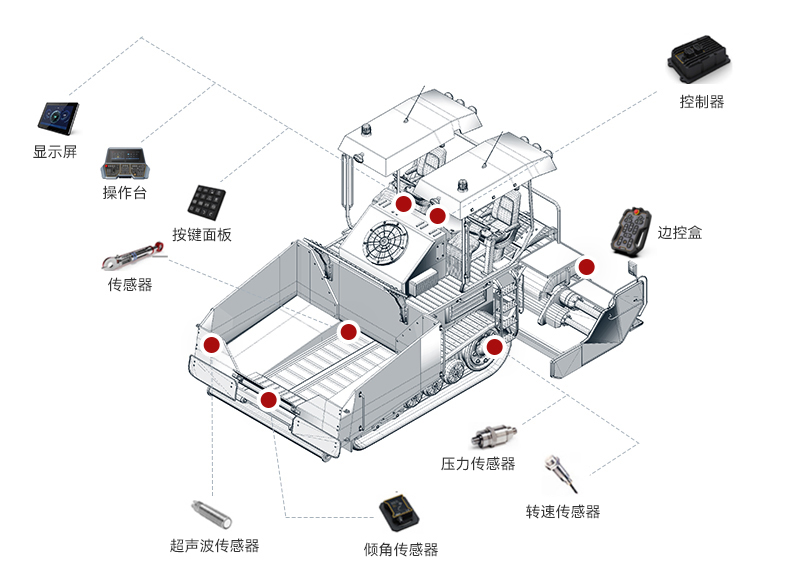 必一運動智能攤鋪機解決方案整合了感知技術、自動控制系統和數據分析算法,實現了攤鋪機高度智能化操作。通過實時獲取路面信息和實時調整施工參數,使攤鋪機操作更加精準、高效和可靠。